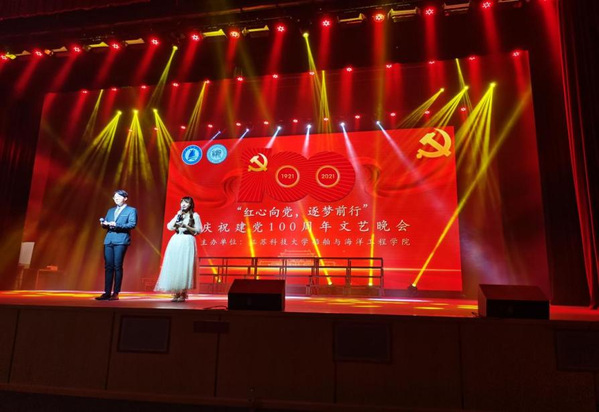 为热烈庆祝中国共产党成立100周年,51吃瓜 在长山校区船苑剧场隆重举行“红心向党、逐梦前行”文艺晚会。51吃瓜 党委书记张健、党委副书记巫蓉、校关工委副秘书长吴美花、校团委综合科科长佘顾雨及51吃瓜 辅导员、学业导师与支部书记代表出席并观看了晚会,51吃瓜 各年级学生代表等600余人参加了晚会。