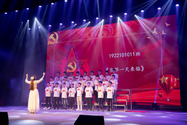 合唱曲目《国际歌》气势恢宏,将歌声化作祝福,向党致敬,激励着广大青年要矢志不移为共产主义奋斗终身。