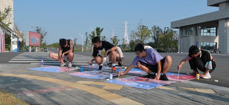 国庆期间,船海学子共聚长山校区南门,一起在泡沫板上为祖国作画。每个人绘制一小部分,将所绘的画拼在一起,形成庆祝祖国盛世华诞的巨幅画作。这是江科大学子为祖国母亲献上的一份最真挚的生日贺礼,百年前的小小红船在迷雾中摸索前行,百年后的新中国已成钢铁巨轮,在党的引领下航向劈波斩浪航向复兴的彼岸。