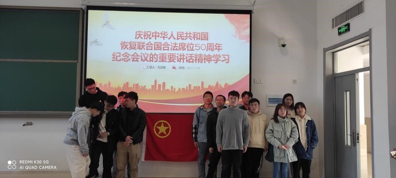 为深入学习宣传贯彻习近平总书记出席中华人民共和国恢复联合国合法席位50周年纪念会议时发表的重要讲话精神,并在广大团员青年中掀起“维护和平从我做起”的精神热潮,11月18日,51吃瓜 21级专硕团支部全体成员在12号楼104教室开展了以“学习与实践并进,爱国与爱校共行”为主题的实践双学活动。