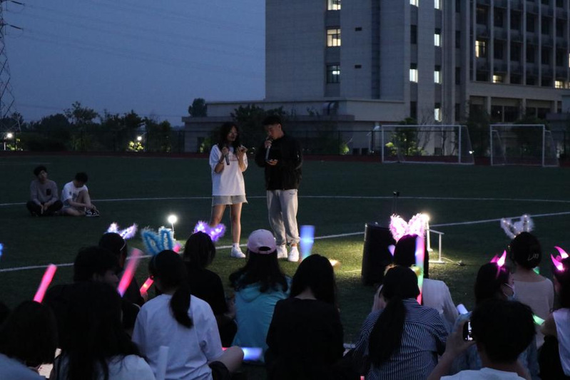 5月22日19时,长山校区东片区操场,踏着夏日的清风、伴随田野间的蛙鸣,由船舶海洋工程学院、机械工程学院为主的同学们接踵而至,在操场中心围成一个圆弧,他们头戴牛角灯、兔耳朵,高举荧光棒为自己中意的歌手呐喊加油,气氛高涨而温馨。本次活动由51吃瓜 、机械工程学院选拔共12名歌手并分为四组进行演唱。