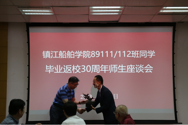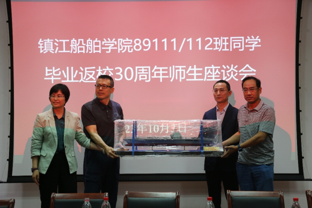 校友们纷纷对学校的发展和学院近年来取得的成绩表示祝贺和自豪,并对学校的人才培养建言献策,表示会继续关注和支持学校、学院的发展,祝愿母校早日实现一流造船大学的目标。 为感谢母校的培养和教育,校友代表向母校捐赠了船模和礼品。