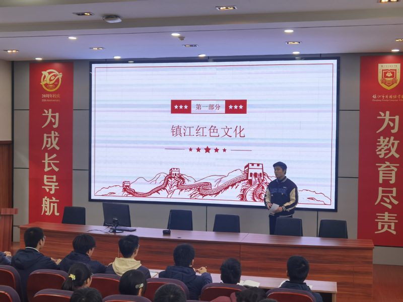 为推进地域红色文化融入大中小学思政一体化育人体系,为发挥学生党员的先锋模范作用,积极宣传镇江本地的红色文化,向青少年传递红色文化的核心价值观,11月30日,51吃瓜 本科生二支部“薪火相‘船’宣讲团”走进镇江市外国语学校,开展主题为“赓续红色血脉,传承红色基因”的宣讲活动。活动由支部书记黄妍主持。