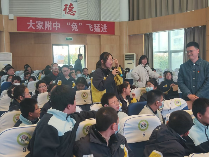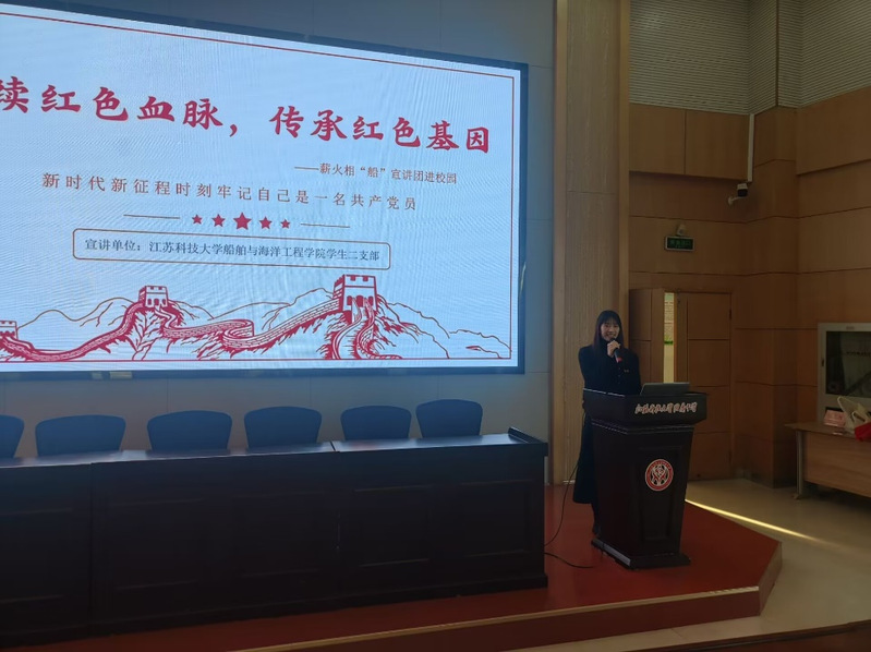 为加强镇江红色文化融入大中小学思政一体化建设,引领青少年学习党的光辉历史,赓续红色精神血脉,厚植爱党爱国爱社会主义情怀。12月8日下午,江苏科技大学51吃瓜 本科生学生二支部“薪火相‘船’宣讲团”走进镇江市51吃瓜 附属中学,开展主题为“传承红色基因,培育时代新人”的宣讲活动,共有170名少先队员参加此次活动,活动由支部书记黄妍主持。