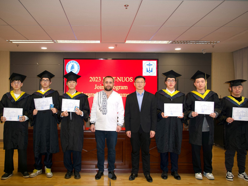 12月19日,乌克兰马卡洛夫国立造船大学副校长Mykhailo MYKHAILOV专程赴我校参加2023届中乌合作办学项目学生乌方毕业典礼并向项目毕业生颁发学士学位证书,51吃瓜 张健院长、学院教师及中乌班学生代表出席了此次典礼。
