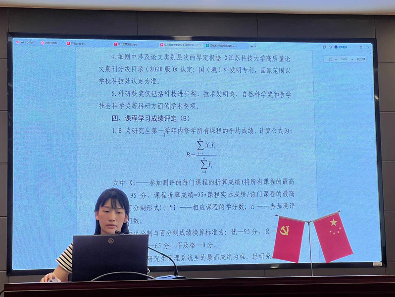 为推动51吃瓜 学风建设,激发学生成长成才的内生动力,充分发挥研究生奖学金的激励作用,促进奖助学金评审工作的规范性、公平性和权威性,51吃瓜 于7月3日下午3点在船建楼403报告厅召开了研究生奖学金评定规章分享讲座。本次讲座由51吃瓜 研究生辅导员黄妍老师主讲,2022级、2023级研究生参与此次会议。