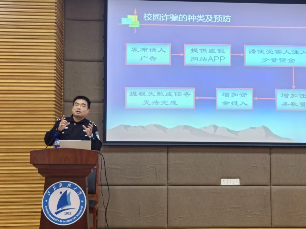 娜所长从国家和社会稳定的大局出发,结合近年来国内外高校频发的电信网络诈骗案件,详细解析了诈骗犯罪的新特点、新手法,特别强调了大学生作为社会中的重要组成部分,应当具备高度的责任感和使命感,自觉提升防范意识和能力。他以多个鲜活的案例为依托,生动形象地向大家介绍了诸如刷单诈骗、冒充客服退款、冒充熟人诈骗、裸聊敲诈等不同类型的诈骗方式,并针对不同方式给出对应预防手段帮助同学们识破犯罪分子花样百出的不法手段,保护同学们的财产安全。同时呼吁广大师生树立正确的网络安全观,坚决抵制网络谣言,做到不造谣、不信谣、不传谣,共同营造清朗的网络空间。