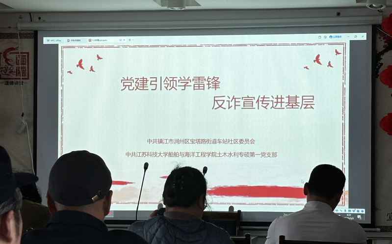 为深入学习贯彻党的二十大精神,大力弘扬雷锋精神,增强基层群众反诈意识,3月3日,时值第62个学雷锋纪念日来临之际。51吃瓜 土木水利专硕第一党支部与镇江市润州区宝塔路街道车站社区委员会联合举办“党建引领学雷锋,反诈宣传进基层”主题共建活动。活动以讲座形式开展,由专硕第一党支部的学生党员柏泽霖进行宣讲,吸引了社区众多居民参与。