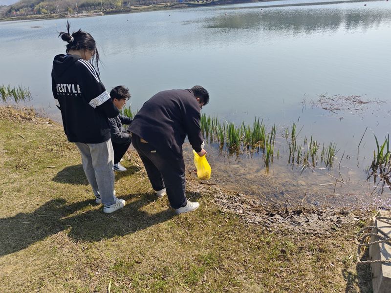 志愿者队伍转战海韵湖畔,针对湖岸线及周边草坪开展“净滩”行动。海韵湖是校园内重要的水景区域,但因常年风吹日晒,湖岸周边堆积了不少杂草和垃圾。志愿者们手持垃圾钳、环保袋,重点清理了湖岸漂浮物、杂草及隐蔽角落的废弃物,同时对湖畔步道进行清扫。活动过程中,同学们还向过往师生普及垃圾分类知识,倡导“随手清洁、人人参与”的环保理念。