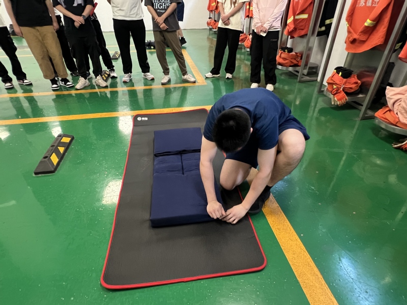 随后,消防救援人员带领同学们参观了各类消防救援车辆和消防救援装备,向他们介绍了不同救援车辆的用途。消防站长结合船海专业特性,对比讲解水上消防难点,学子们纷纷记录要点。消防站随即演示“水雾喷淋系统”模拟船舶灭火场景,研究生分组操作水带连接、战术配合,在实操中深化“防、控、逃”一体化认知。