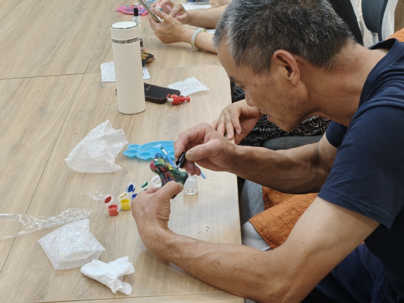 在手工体验环节,40余名学生与社区居民在指导下亲手制作泥叫叫。揉泥、塑形、开孔、修胚…参与者沉浸于泥土的触感中,感受传统手工艺的温度。船舶学院学生将专业特色融入创作,捏制出船锚、浪花等造型,诠释“船承”主题的双重内涵——既是对非遗技艺的接力传承,亦彰显船舶学子的专业认同。