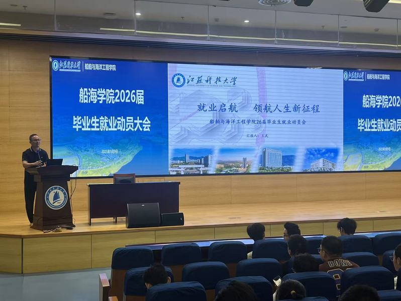 大会伊始,巫蓉副书记围绕当前考研状况与就业形势展开深度分析。她结合全国及江苏省考研报考人数变化、录取率趋势,以及船舶与海洋工程领域的行业发展动态,用详实的数据为同学们勾勒出清晰的竞争图景。同时,巫蓉副书记分享了往届优秀毕业生考研成功上岸、优质就业的多项典型案例,既有跨校考取知名高校船舶专业研究生的奋斗故事,也有进入中船集团、中远海运等行业龙头企业的就业范例。这些鲜活的案例不仅让同学们直观感受到行业机遇,更有效缓解了大家的焦虑情绪,坚定了冲刺考研、积极就业的信心。