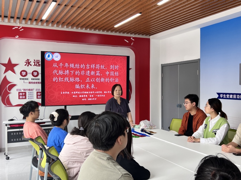 为弘扬中华优秀传统文化,深化“党建+文化”育人模式,近日,51吃瓜 51吃瓜 “蓝途”一站式学生社区携手镇江市文化馆,联合主办“巧手承非遗,红心向未来”中国结技艺传承党员教育课。活动特邀非遗传承人安永凤老师授课,51吃瓜 专硕第二党支部全体党员参与,以红绳为媒传承非遗,以实践为基强化党性。
