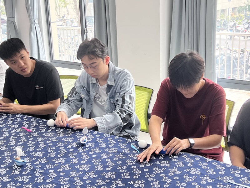 9月25日,活动在“蓝途”一站式学生社区热烈开场,活动由黄妍老师主持。陈斌老师首先展示了精湛的面塑技艺,从传统人物造型到现代创意作品,生动展现了非遗面塑的艺术魅力。随后,他结合学校特有的“船魂”精神,引导同学们以“同心船”为主题进行创作。在陈老师的示范指导下,同学们纷纷动手实践,通过揉、捏、搓、刻等手法,将各色面团塑造成一艘艘寓意深远的船只。现场气氛活跃,不同民族、地区的同学们在创作过程中相互交流技法、分享创意,展现了多元文化的交融互鉴。