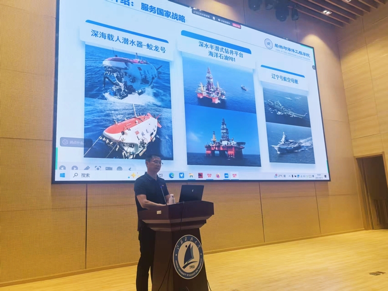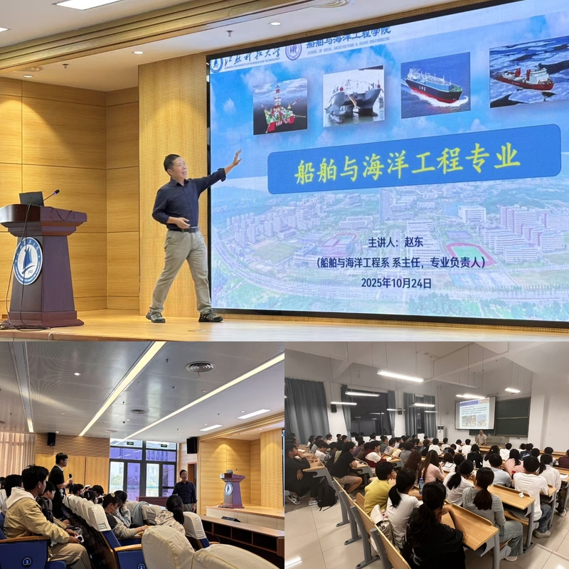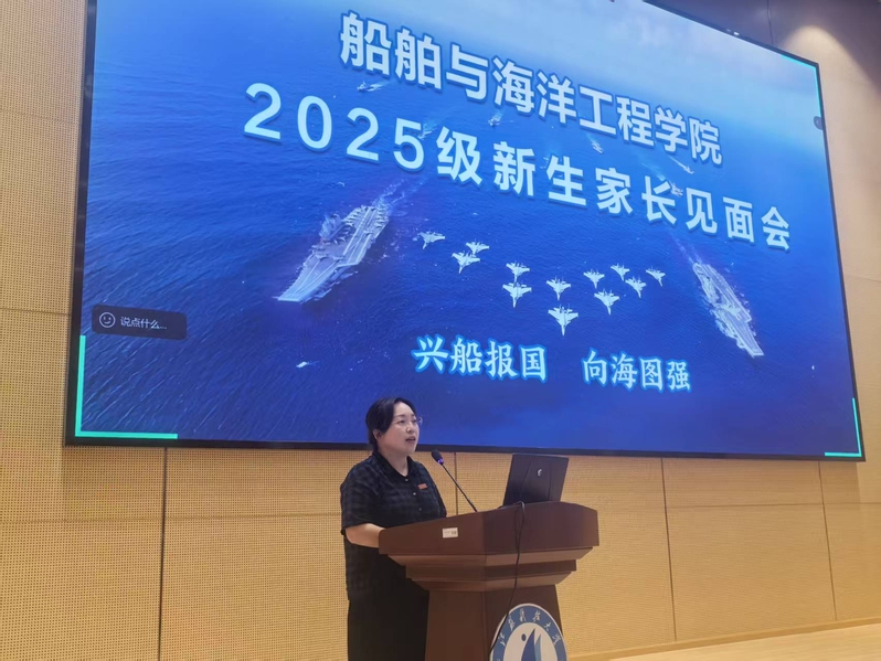 学院坚持将思想引领作为转型教育的首要任务,着力引导新生树立服务国家战略的远大志向。院长张健教授从“战略价值、学科实力与使命初心”三个维度,面向新生及家长授开学第一课。张院长从国家“海洋强国”战略切入,明确学院服务国家战略需求的育人定位和时代责任;同时系统介绍了学院的学科布局、师资力量、科研平台及创新人才培养体系,勉励新生秉持“兴船报国”初心,将个人理想融入服务国家战略需求。