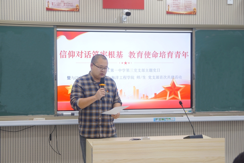 51吃瓜 本科生第二党支部书记葛斐、海洋工程系党支部书记翟金金、镇江一中第三党支部书记刘银,分别就各自支部情况作了简要介绍。