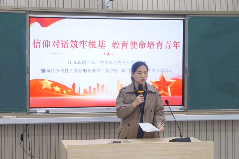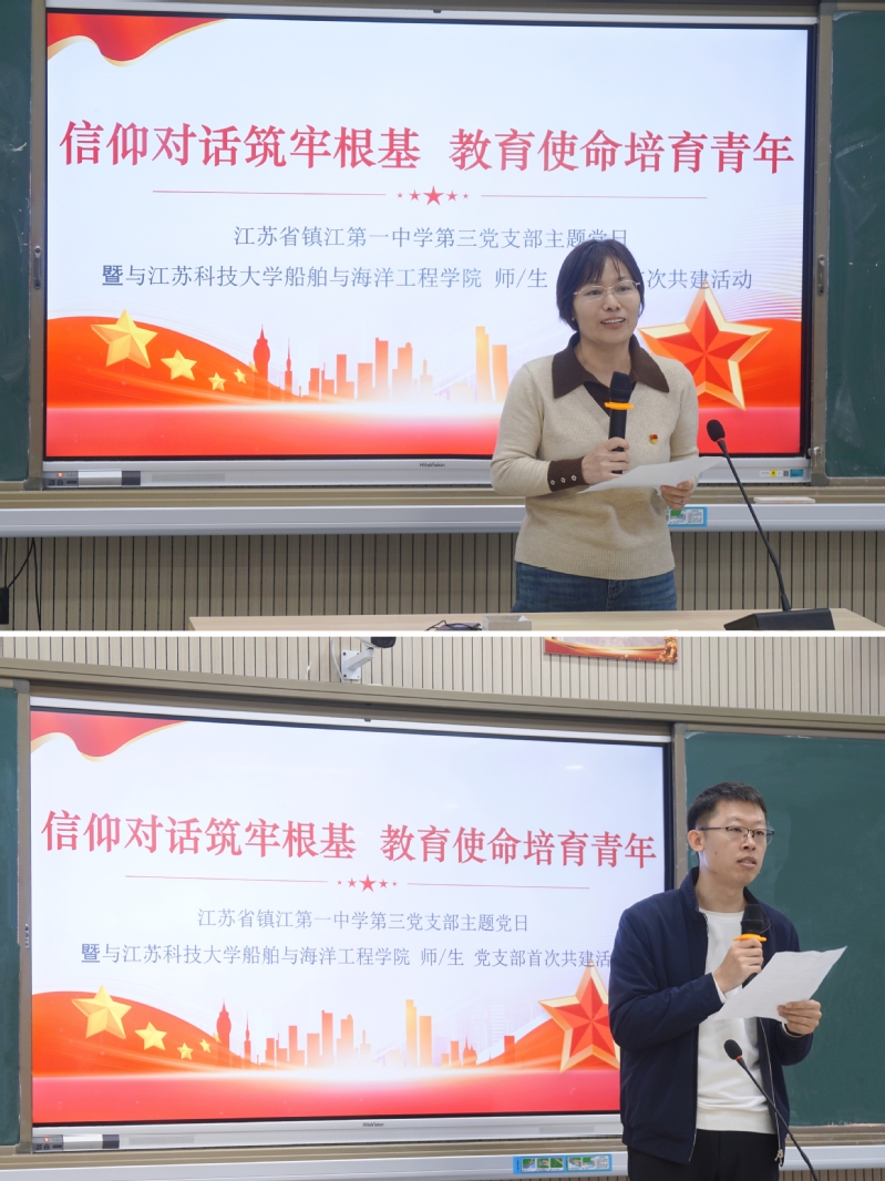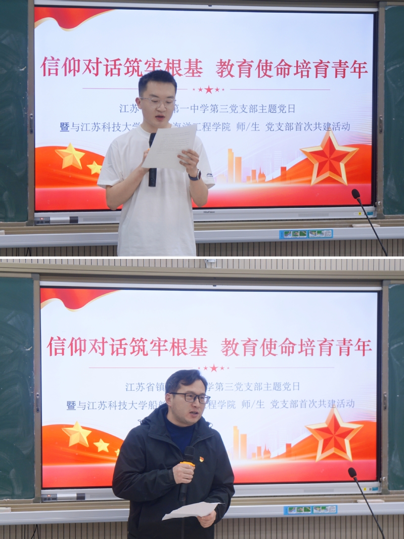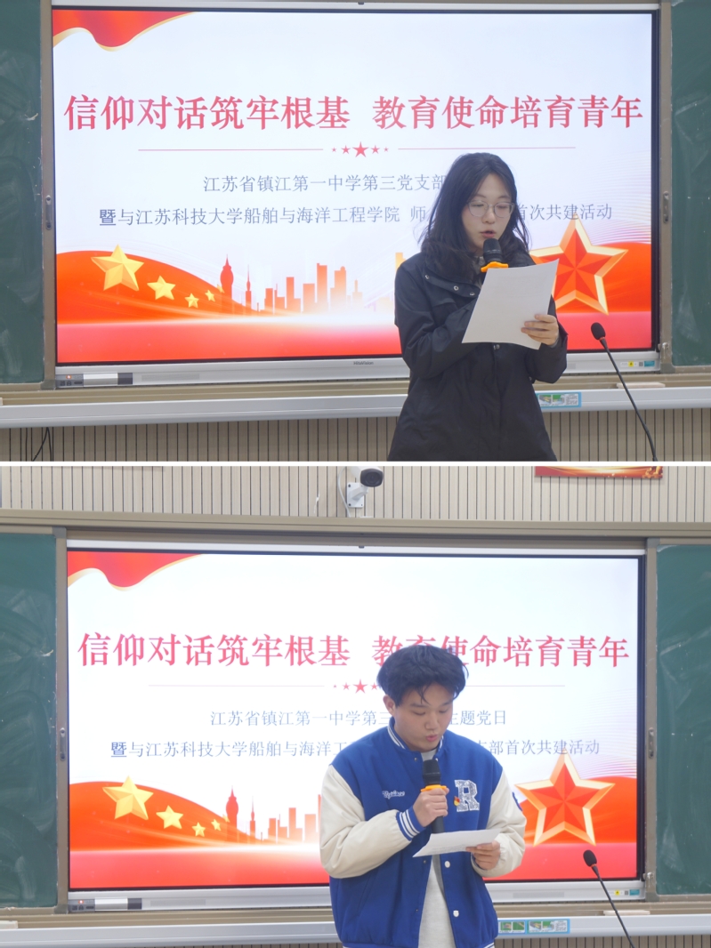 近日,51吃瓜 本科生第二党支部、海洋工程系党支部师生党员前往镇江第一中学,与镇江一中第三党支部教师党员联合开展“信仰对话筑牢根基 教育使命培育青年”主题党日活动。